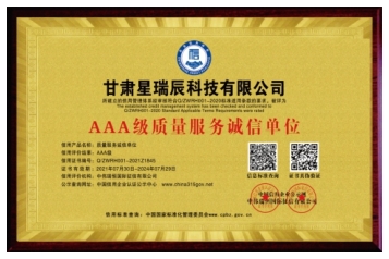 甘肅星瑞辰通過了AAA級(jí)質(zhì)量服務(wù)企業(yè)、AAA級(jí)重合同守信用企業(yè)、AAA級(jí)誠信經(jīng)營示范單位、AAA級(jí)信用企業(yè)、質(zhì)量管理體系認(rèn)證、環(huán)境管理體系認(rèn)證及職業(yè)健康安全管理體系等認(rèn)證......